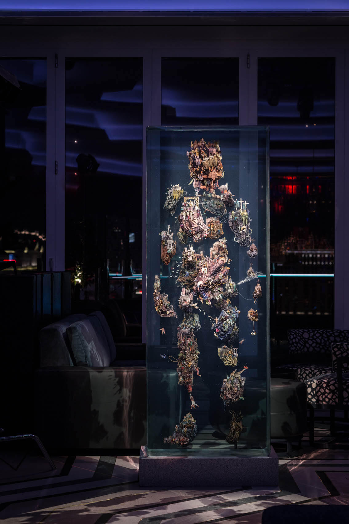 Completed in 2018, Arcon provided installer and design-assist services for both interior and exterior terrazzo finishes at this stylish rooftop lounge atop the Palms in Las Vegas. The project features intricate designs with multiple terrazzo mixes, combining interior epoxy terrazzo and UV-resistant exterior terrazzo to create a seamless transition from the lounge interior to the open-air balcony.