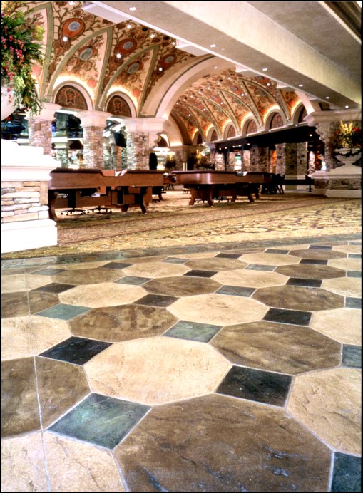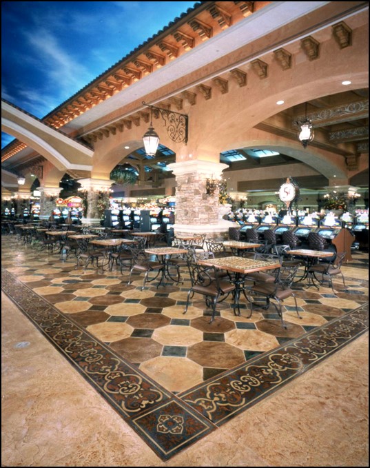 Completed in 2002, Arcon provided installer and design-assist services for decorative stamped overlay and concrete finishes throughout Green Valley Ranch Resort & Spa in Henderson, Nevada. The project featured multiple colors and intricate stamped patterns across large areas of the casino and food court, delivering a refined, decorative surface that complements the resort’s inviting atmosphere.